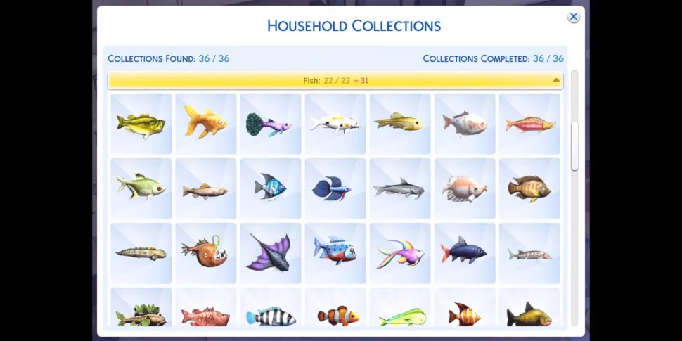 Как и коллекция садоводства, коллекция рыбы довольно обширна, и в нее добавляются дополнительные предметы из различных пакетов. Хотя на ее создание может потребоваться время и посещение различных миров, высокий навык рыбной ловли и использование приманок, выполнить ее не так уж сложно.