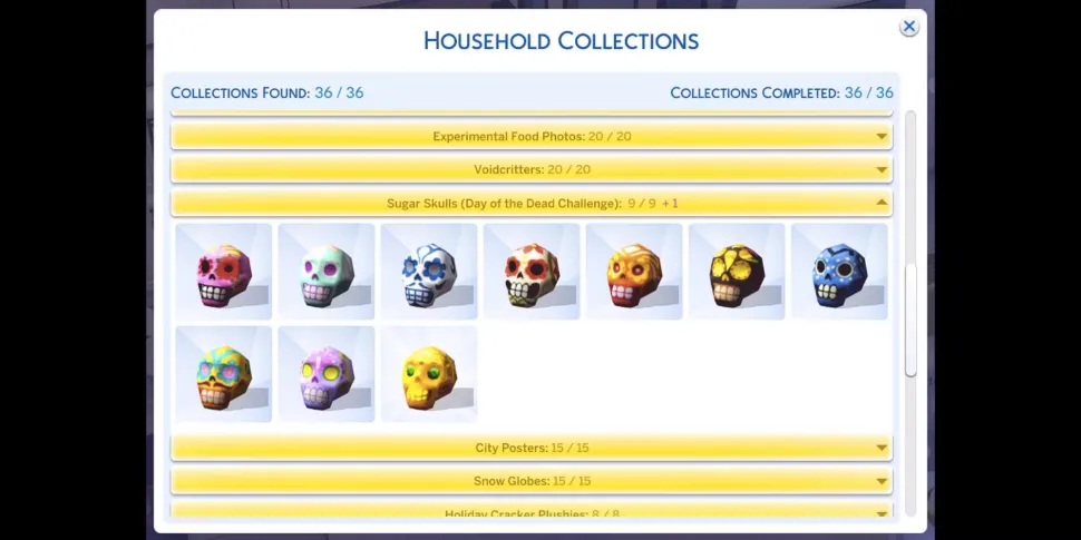 Эта коллекция также была частью ограниченного по времени события, но ее все еще можно собрать, даже не имея пакета Seasons. Для этого игроки должны оставить подношение в виде сахарного черепа на надгробии ночью, пока дух призрака еще присутствует. В случае удачи на следующий день появится специальный NPC под названием "Праздник Дня мертвых", и игроки смогут попросить у него сахарный череп.