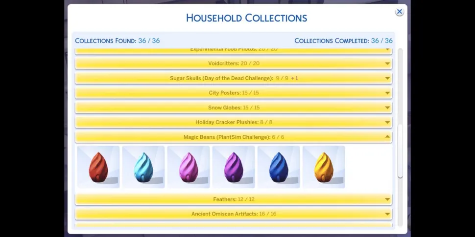 Коллекция "Волшебные бобы" изначально была частью задания "Plant Sim Scenario", которое больше не доступно в игре. Однако игроки с высоким уровнем навыков садоводства и желанием тратить симолеоны все еще могут получить эту коллекцию, покупая редкие пакеты семян и надеясь найти среди них волшебные бобы.