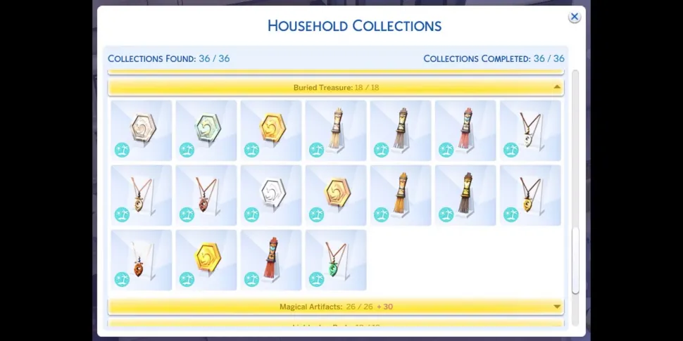 Коллекция "Магические артефакты" - это уникальное дополнение к игре, которое поставляется исключительно с пакетом расширения Realm of Magic. Коллекция состоит из множества магических предметов, таких как жезлы, метлы и знакомые, доступные в различных дизайнах и цветах. В то время как некоторые из наиболее распространенных артефактов можно легко купить в Magic Realm в Caster Alley, более редкие и желанные можно получить только в дуэли с другими заклинателями. Таким образом, коллекция полностью доступна только тем симам, которые являются заклинателями. К счастью, эти предметы также функциональны для заклинателей.