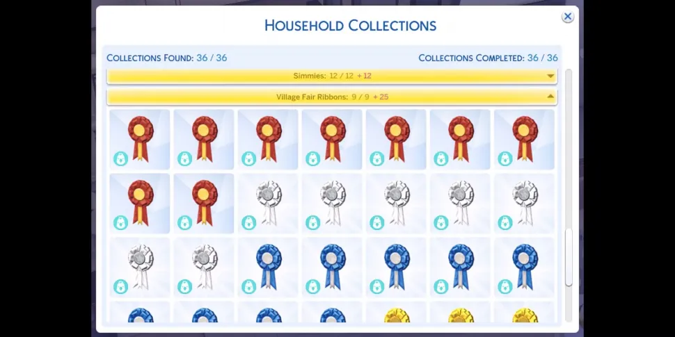 Коллекция лент Village Fair Ribbons является эксклюзивной для пакета расширения Cottage Living. Коллекция лент деревенской ярмарки в The Sims 4 может быть сложным набором для завершения из-за множества перекрасок, каждая из которых соответствует различным рейтингам соревнований. Сбор всех лент также может занять много времени.