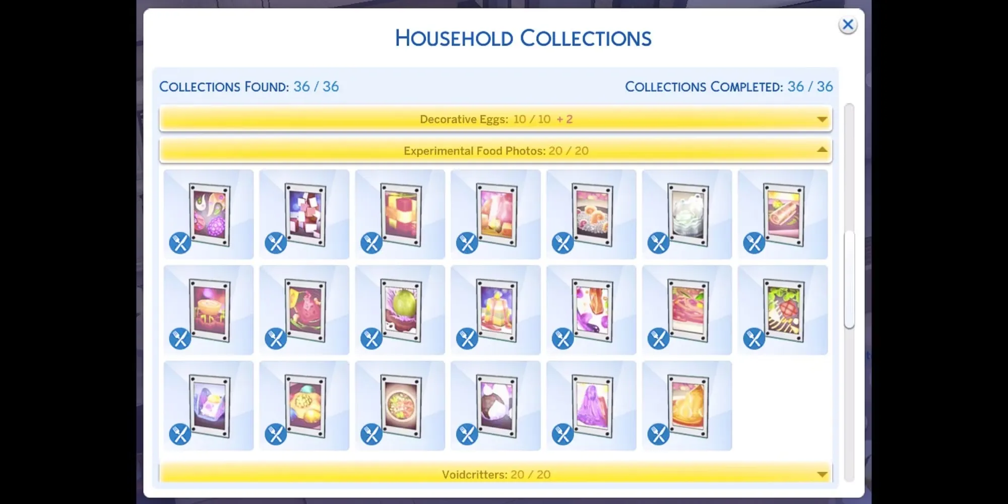 Коллекция "Фотографии экспериментальных блюд" является эксклюзивной для пакета "Dine Out" и может быть заполнена только теми симами, которые пробуют экспериментальные блюда во время посещения ресторана. Коллекция требует, чтобы игроки фотографировали блюда до того, как симы их съедят.