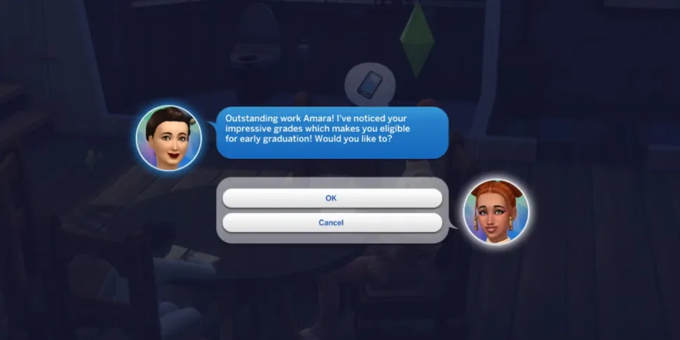 Если игроки нажмут "ОК", появится еще одно всплывающее окно с сообщением о том, что их подросток досрочно окончил школу. Это действие автоматически пропустит церемонию вручения дипломов, и через несколько дней по почте придет аттестат о среднем образовании.