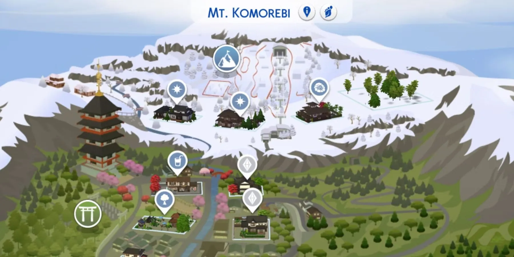 The Sims 4: Снежный побег переносит игроков в зимний мир, сосредоточенный на приключениях и отдыхе в огромном горном регионе. Игроки могут наслаждаться такими видами физической активности, как скалолазание и катание на лыжах, а могут выбрать более спокойные маршруты по туристическим тропам и горячим источникам. Амбициозные симы могут попробовать экскурсию "Восхождение на гору".