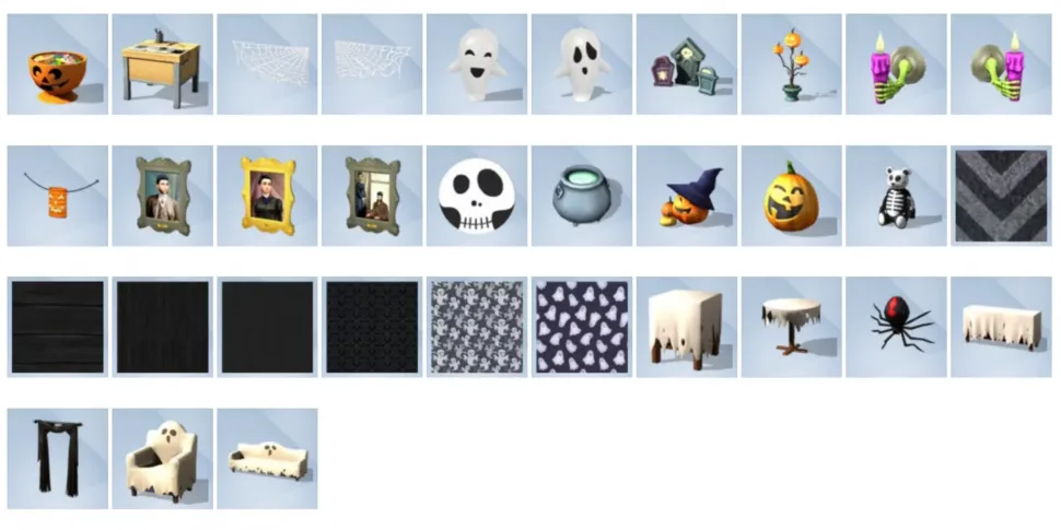 В этом пакете есть много мебели для дома и улицы, и большинство из них посвящено Хэллоуину. Эта мебель отлично подойдет для игроков, которым нравится создавать свои внутриигровые праздники и устраивать вечеринки, чтобы отпраздновать их вместе с соседями.