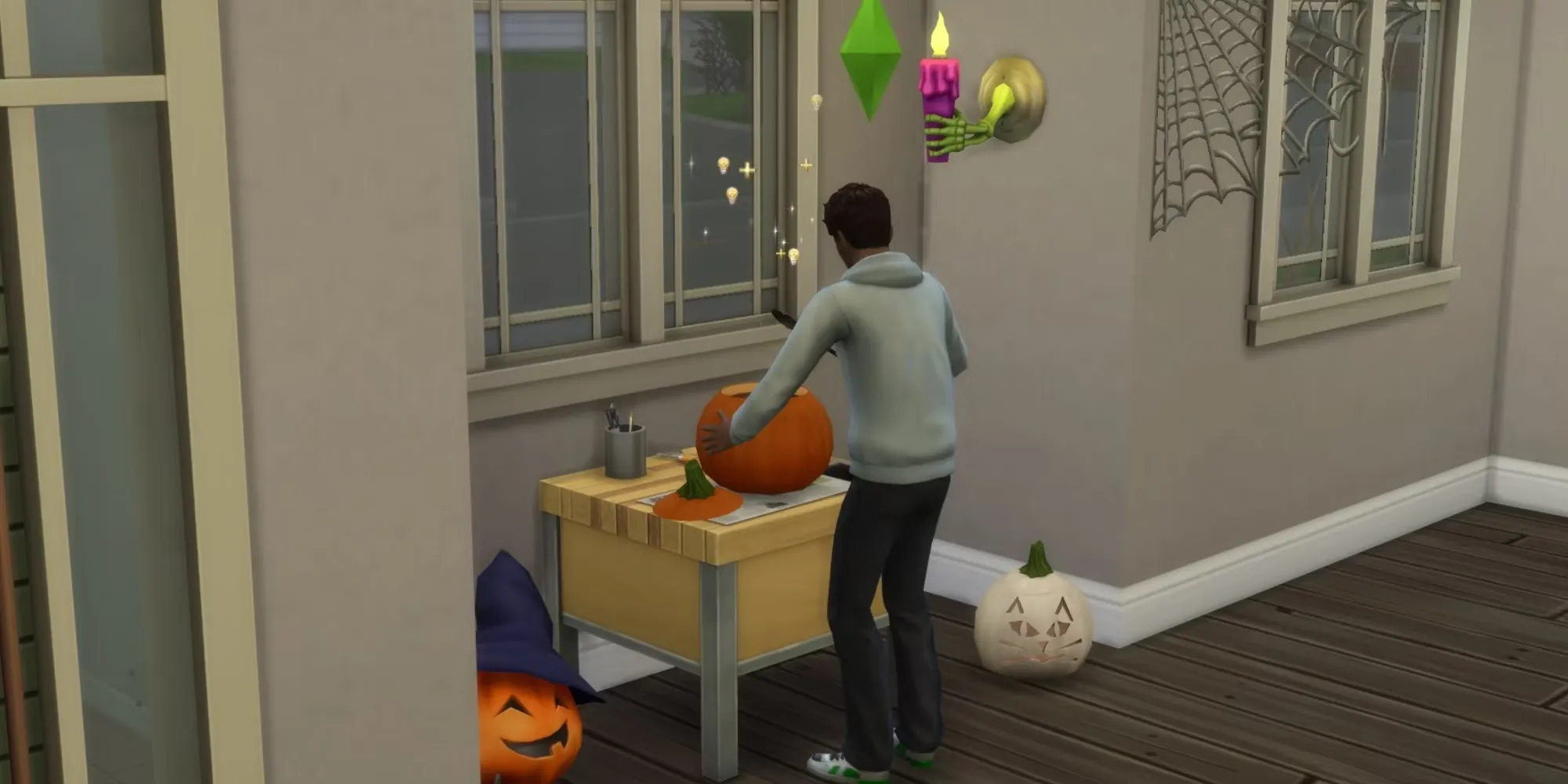 Еще одна уникальная функция, добавленная в пакет "Жуткие штучки", - станция карвинга тыкв, которая доступна в режиме строительства. Станция резьбы по тыквам - это не только забавный способ улучшить навык "Рукоделие" сима, но и отличный способ украсить дом сима.