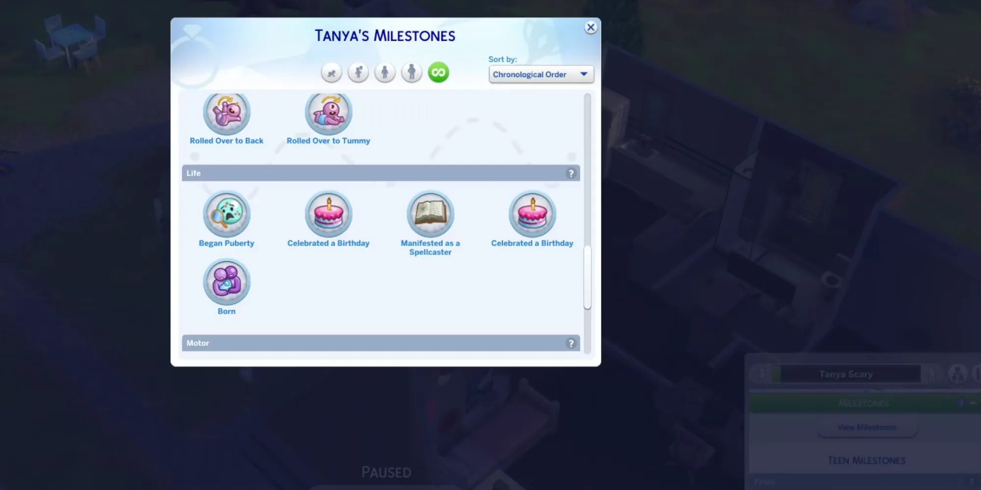Если сим родился в игре, а не был создан в CAS, он сразу же получит веху "Рождение". После этого оно будет происходить довольно часто. Как только новорожденный ребенок вырастет и станет младенцем, он начнет открывать множество вех. На самом деле это может произойти сразу после взросления; очень часто веха "Первая улыбка младенца" открывается сразу после празднования первого дня рождения.