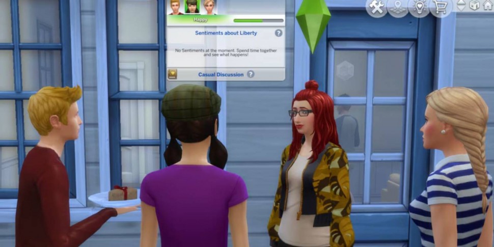 Панель разговора была улучшена, чтобы отображать более подробную информацию о взаимодействующих симах. Помимо отображения их текущего настроения и уровня отношений, панель теперь включает в себя «Чувства», которые дают более глубокое представление о том, что симы чувствуют друг к другу. Это обновление обогащает контекст разговора, позволяя игрокам лучше понимать и управлять социальной динамикой своих симов.