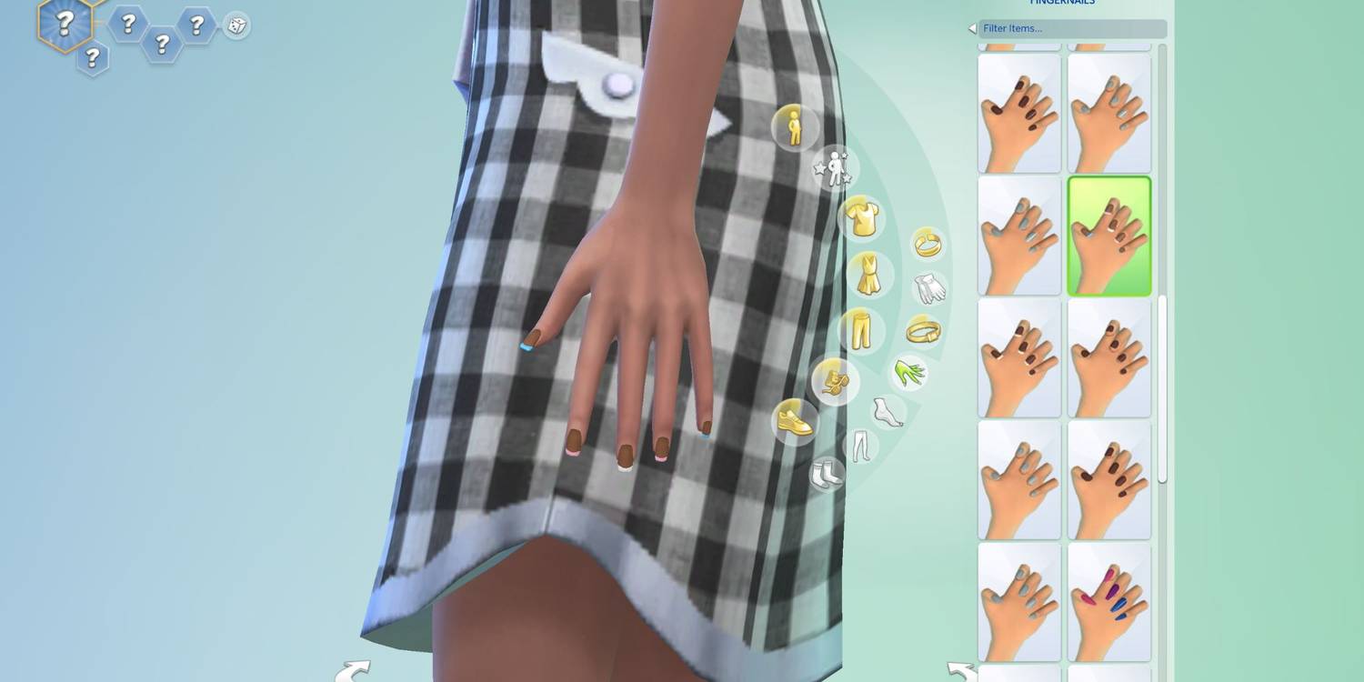 В игру добавлены новые дизайны ногтей, включая дополнительные французские кончики и гробовые ногти. Также появились новые варианты цветов, включая различные нюдовые тона, чтобы лучше соответствовать оттенкам кожи симов. Кроме того, в этой категории исправлено множество ошибок, таких как уменьшение обрезания ногтей в перчатках, а также возможность персонализировать ногти на ногах малышей.