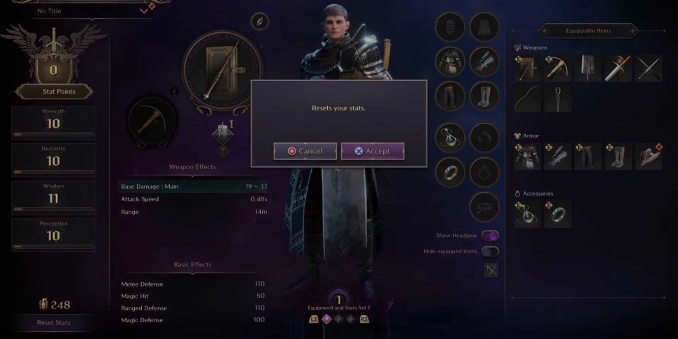 Есть игры, которые наказывают игроков за плохое распределение статов, но этого можно избежать, позволив им сбросить эти очки. Если игроки захотят переквалифицироваться, они найдут кнопку сброса статов в нижней части меню. В открытой бете уважение персонажа совершенно бесплатно. В предыдущих сборках игрокам нужно было приобрести специальный предмет под названием «Песочные часы начала», стоимость которого составляла 30 000 золотых.