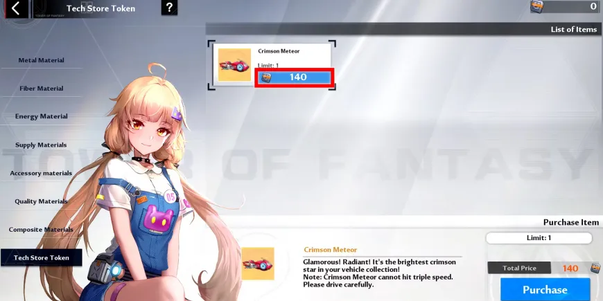 Чтобы разблокировать Crimson Meteor Vehicle в Tower of fantasy, игрокам необходимо разблокировать Artificial Island Construction (Build Mode) и собрать 140 жетонов магазина техники.