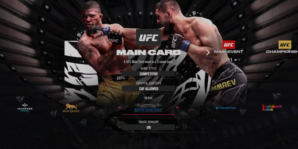 - Теперь игроки могут выбрать один из вариантов: UFC Main Card, UFC Main Event, UFC Championship, Backyard и Kumite.