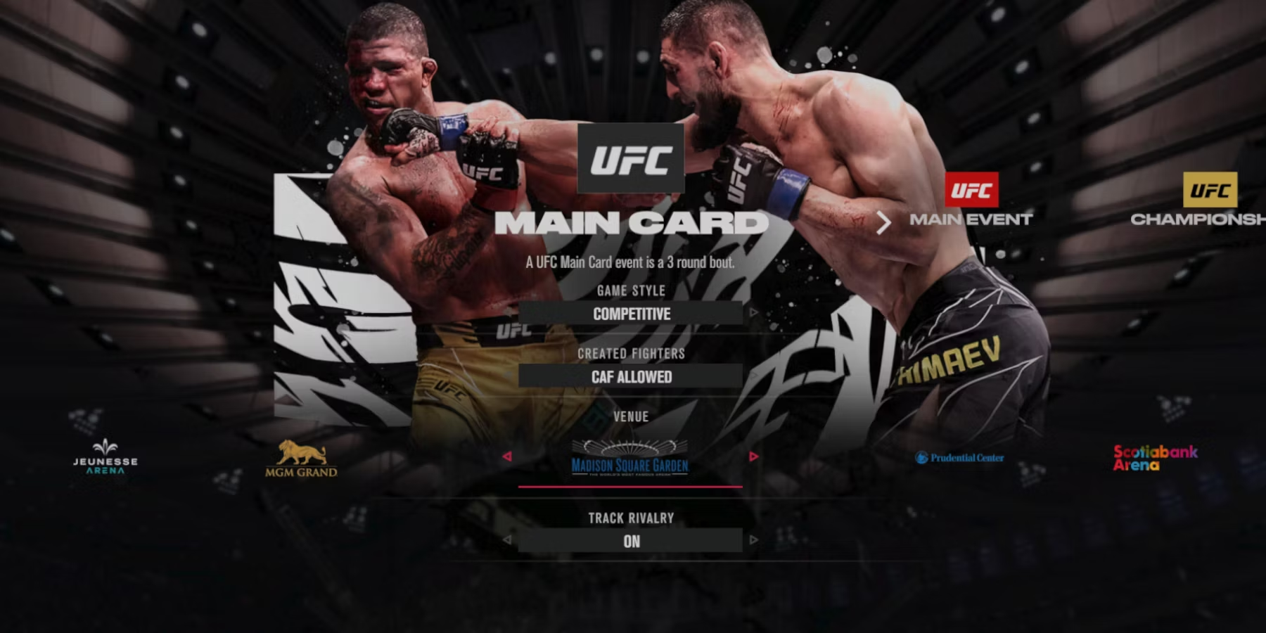 - Теперь игроки могут выбрать один из вариантов: UFC Main Card, UFC Main Event, UFC Championship, Backyard и Kumite.