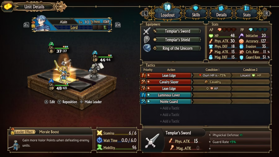 Хотя вполне вероятно, что это наименее сильная из трех командных составов, описанных в этом руководстве, она определенно способна дать бой. В частности, Housecarl - довольно сильный класс в Unicorn Overlord, так как его способность Parting Blow позволяет ему совершать две атаки в каждом бою. Игрокам, создающим этого юнита, стоит позаботиться о том, чтобы дать Лексу несколько надежных защитных предметов, ведь боец - не самый лучший танк в игре.