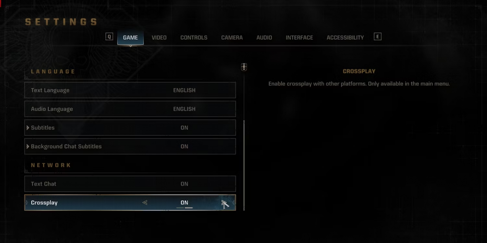 Обратите внимание, что настроить кроссплей можно только в главном меню. В игре эта опция будет отображаться серым цветом.