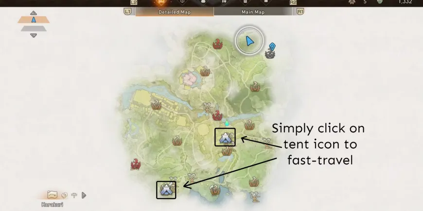 Эта опция, опять же, будет доступна только в определенных областях игры. Как и перемещение у костра, игроки впервые заметят ее, когда разблокируют город Минато. Находясь в городе, игрок может открыть "подробную карту" и найти несколько значков с изогнутыми стрелками. Эти значки позволяют игрокам мгновенно перемещаться к различным интересным точкам в самом городе, что, несомненно, сэкономит несколько повторяющихся путешествий вверх и вниз по деревянным ступеням города.