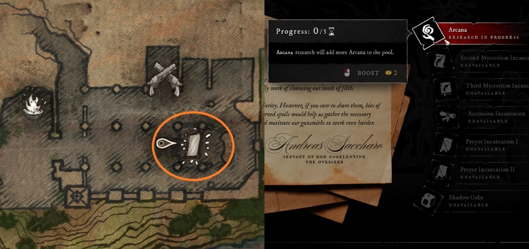 Исследования в Witchfire - это большая часть продвижения в игре, причем очень увлекательная. В отличие от других систем, где геймер может контролировать выполнение заданий и экспедиций, в Мастерской (floating mirror) можно продвигаться к случайным вещам.