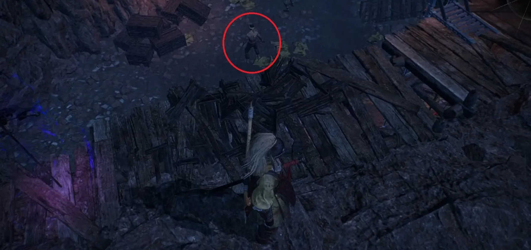 Те, кто использует отличный билд для ранней игры, обнаружат, что Бо Цай не так уж крут, когда он один на один. Но рядом с ним есть два приятеля, которые осложняют ситуацию. Одного из них можно мгновенно убить атакой с воздуха. Посох немного опаснее, чем прямая сабля в списке оружия, поэтому сначала расправьтесь с тем, кто слева.