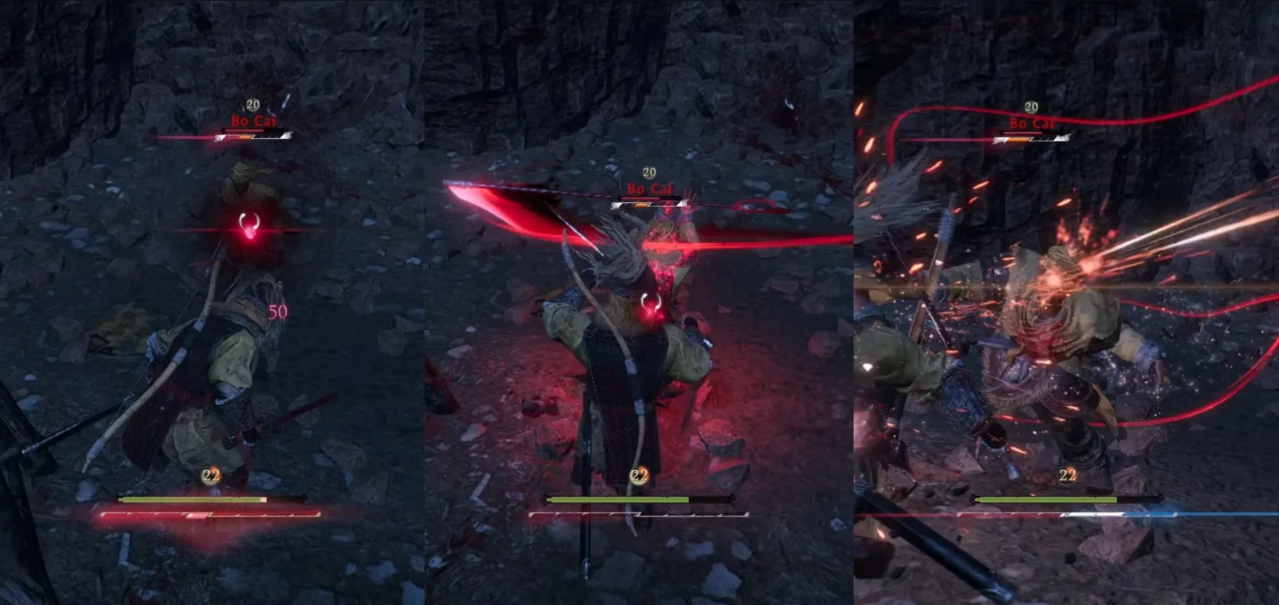 В идеале лучше всего парировать эти атаки. Уклонение работает для первых двух ударов, но игрокам придется отступить на умеренное расстояние, чтобы избежать его третьего удара. Кроме того, при парировании Бо Цай ненадолго пошатывается в сторону. Быстрое оружие может нанести несколько ударов, прежде чем вернуться в оборону.