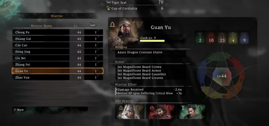 Для этого процесса требуется печать тигра. До тех пор, пока компаньоны не умрут, почти каждая миссия будет давать более двух печатей тигра, что по существу покроет стоимость. Это также повышает их уровень клятвы, просто экипируя их. Их мораль и стойкость можно повысить, чтобы увеличить их силу перед финальной битвой с боссом.