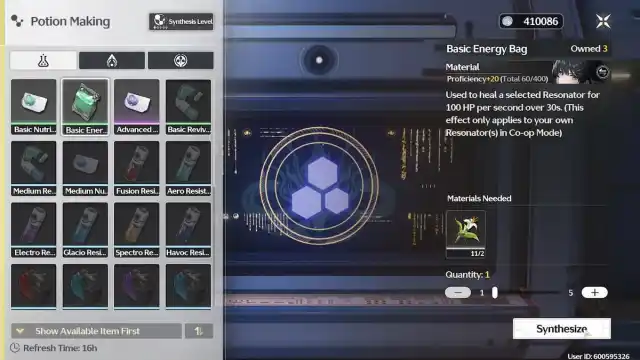 - Используйте синтезатор, чтобы создать предмет снабжения - просто посетите синтезатор в Цзиньчжоу (он находится рядом с крайним левым маяком резонанса) и используйте синтезатор, чтобы создать любой предмет. Целебные предметы очень просты в изготовлении, и, скорее всего, у вас уже есть ингредиенты.