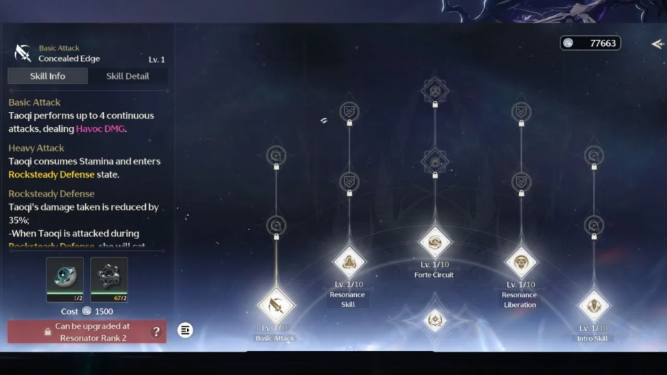 Как только у вас будет хотя бы два Waveworn Residue 210, вы сможете улучшить базовую атаку, навык Resonance, Forte Circuit, Resonance Liberation и Intro Skill вашего Broadblade Resonator. Первый апгрейд этих навыков стоит два Waveworn Residue 210 и два LF Howler Cores. Однако эти навыки можно улучшить, только если Резонатор широкого клинка имеет ранг Резонатора 2.