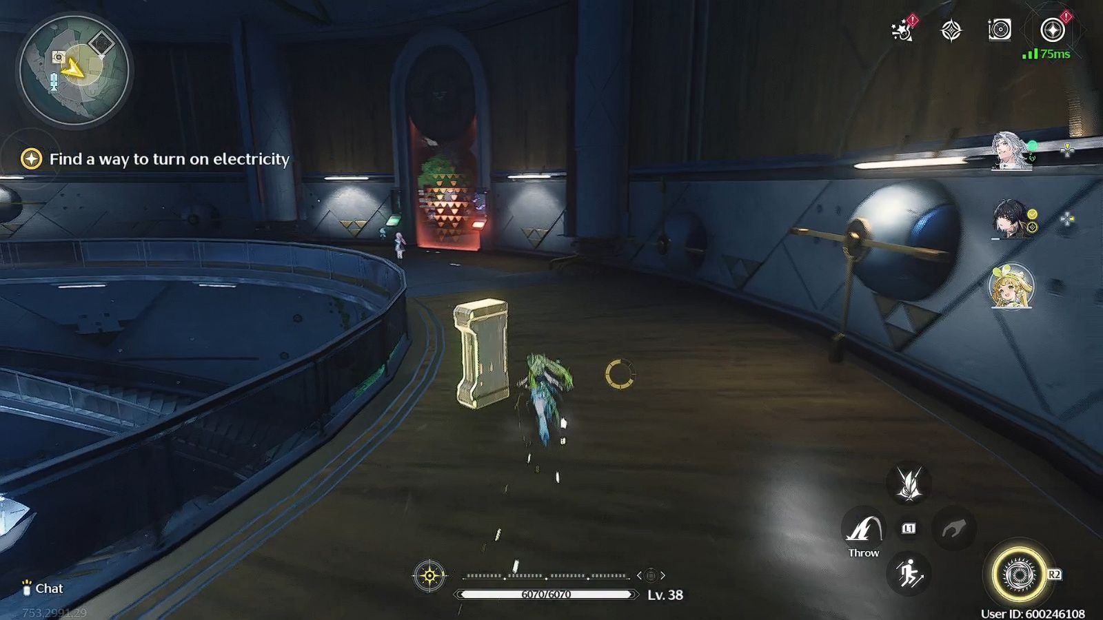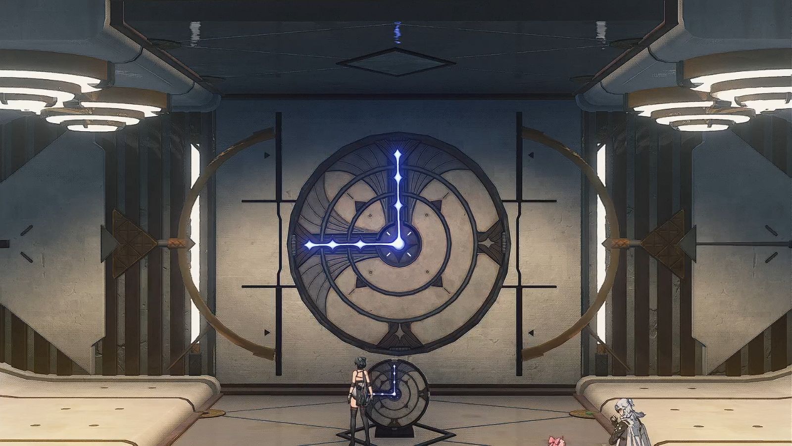 - Оказавшись в этой комнате, взаимодействуйте с Вращающимся механизмом, чтобы включить электричество в Wuthering Waves. Просто вращайте диски, как и раньше, чтобы энергия текла от крайнего кольца к внутреннему.