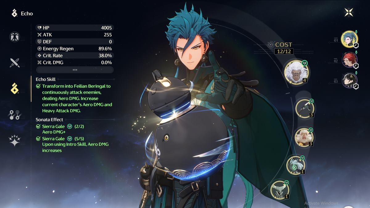 Благодаря своему набору Джиян очень много мчится, нанося при этом огромный аэроурон. Чтобы соответствовать его стилю игры, Feilian Beringal идеально подходит в качестве основного эхо-умения Джияна. Feilian Beringal превращает вас в огромную обезьяну, которая наносит мощный воздушный удар. Когда удар приземляется на противника, Feilian Beringal немедленно выполняет последующую атаку Aero, которая увеличивает урон от тяжелой атаки Aero Джияна на 12 % на 15 секунд.