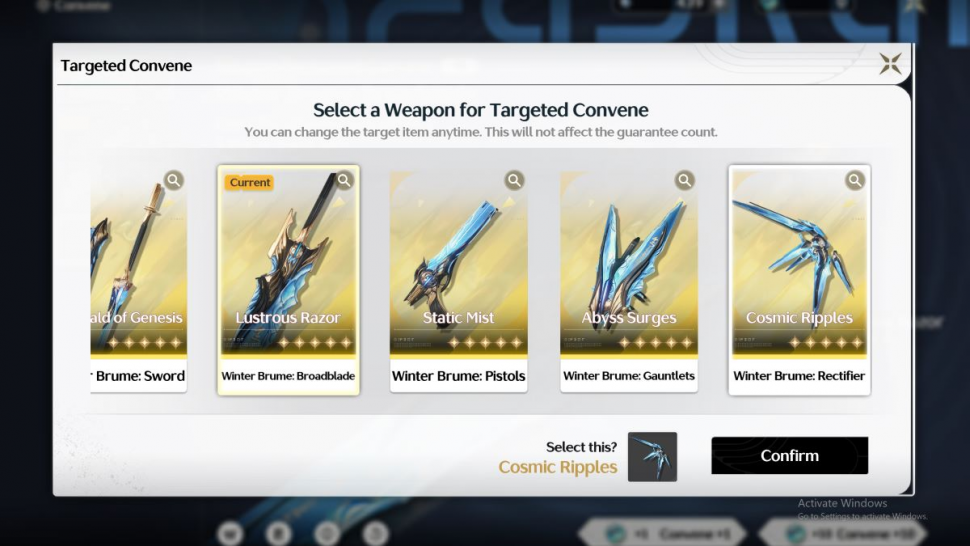 В целом вам следует получить Cosmic Ripples, как только вы достигнете 45-го уровня союза, а остальные виды оружия - достойные варианты, но их можно получить через систему gacha.