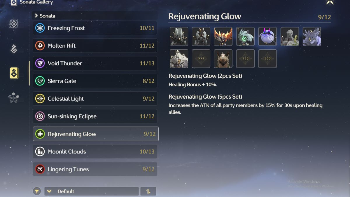 Верина - мощная поддержка Spectro, и вы хотите как можно больше баффнуть ее способности к исцелению. Ее лучший набор эхо - пятикомпонентный Rejuvenating Glow, который увеличивает исцеление на 10 %, а также повышает атаку всей команды на 15 % на 30 секунд с помощью ее Outro Skill.
