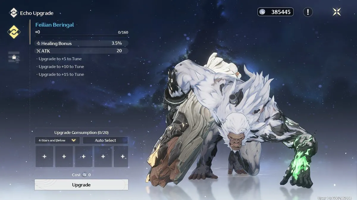 Вы сможете поглотить эхо Фейлиана Берингала после того, как победите эту обезьяну в бою. Feilian Beringal - это 4-звездочный владыка, который непрерывно атакует врагов, нанося им урон с воздуха в Wuthering Waves. Он также увеличивает урон персонажа по воздуху и повышает его тяжелую атаку.