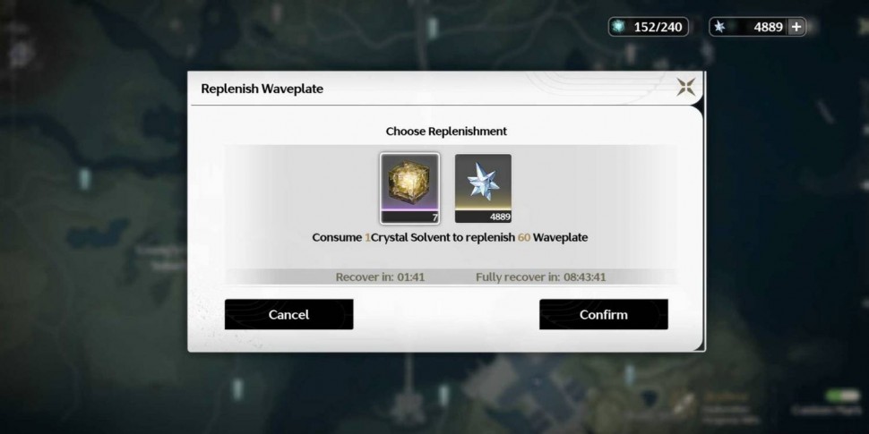 Помимо ожидания таймера перезарядки, игроки могут мгновенно регенерировать дополнительные Волновые пластины, используя различные материалы. Основным способом является Кристаллический растворитель (подобно Хрупкой смоле в Genshin Impact и Топливу в Honkai: Star Rail) - расходный материал, который мгновенно восстанавливает 60 Волновых пластин. Игроки могут найти этот ресурс в своем рюкзаке или нажав на знак плюс рядом с количеством Волновых пластин, где он появляется в качестве опции, если доступен. В настоящее время растворитель кристаллов встречается относительно редко и его можно получить за внутриигровые награды, такие как подкаст «Пионер» и подарочные коды. Поэтому игрокам следует использовать этот ресурс с осторожностью из-за его ограниченной доступности.
