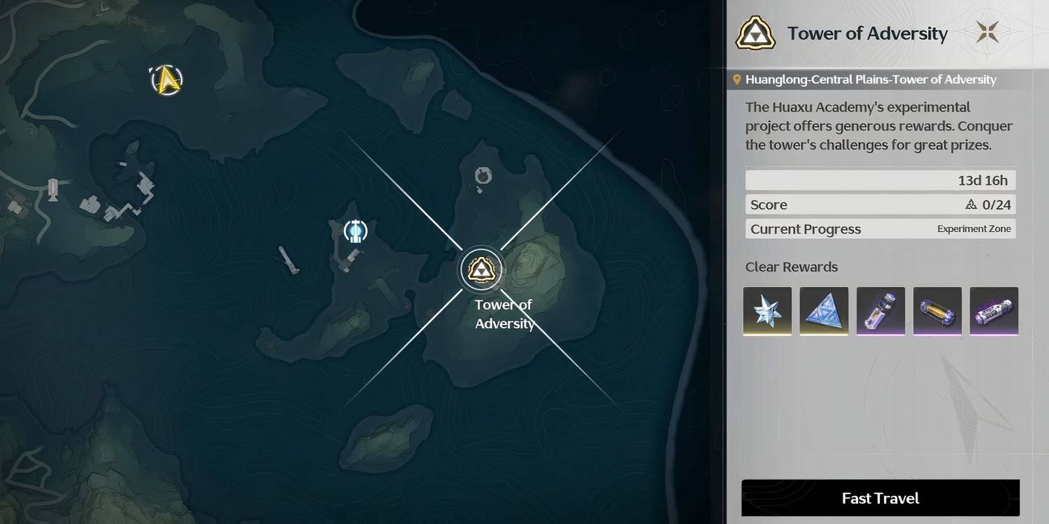 Чтобы открыть доступ к Башне испытаний, игрокам необходимо достичь 15 уровня союза и выполнить обучающий квест «Одиночество в бездне». Как обучающий квест, он включает в себя всего несколько диалогов и открывает доступ к Башне испытаний. После разблокировки она становится постоянной, обеспечивая постоянные трудности и награды. Игроки могут быстро перемещаться к Башне испытаний, которая находится в восточной части Хуалонга - Центральных равнин.