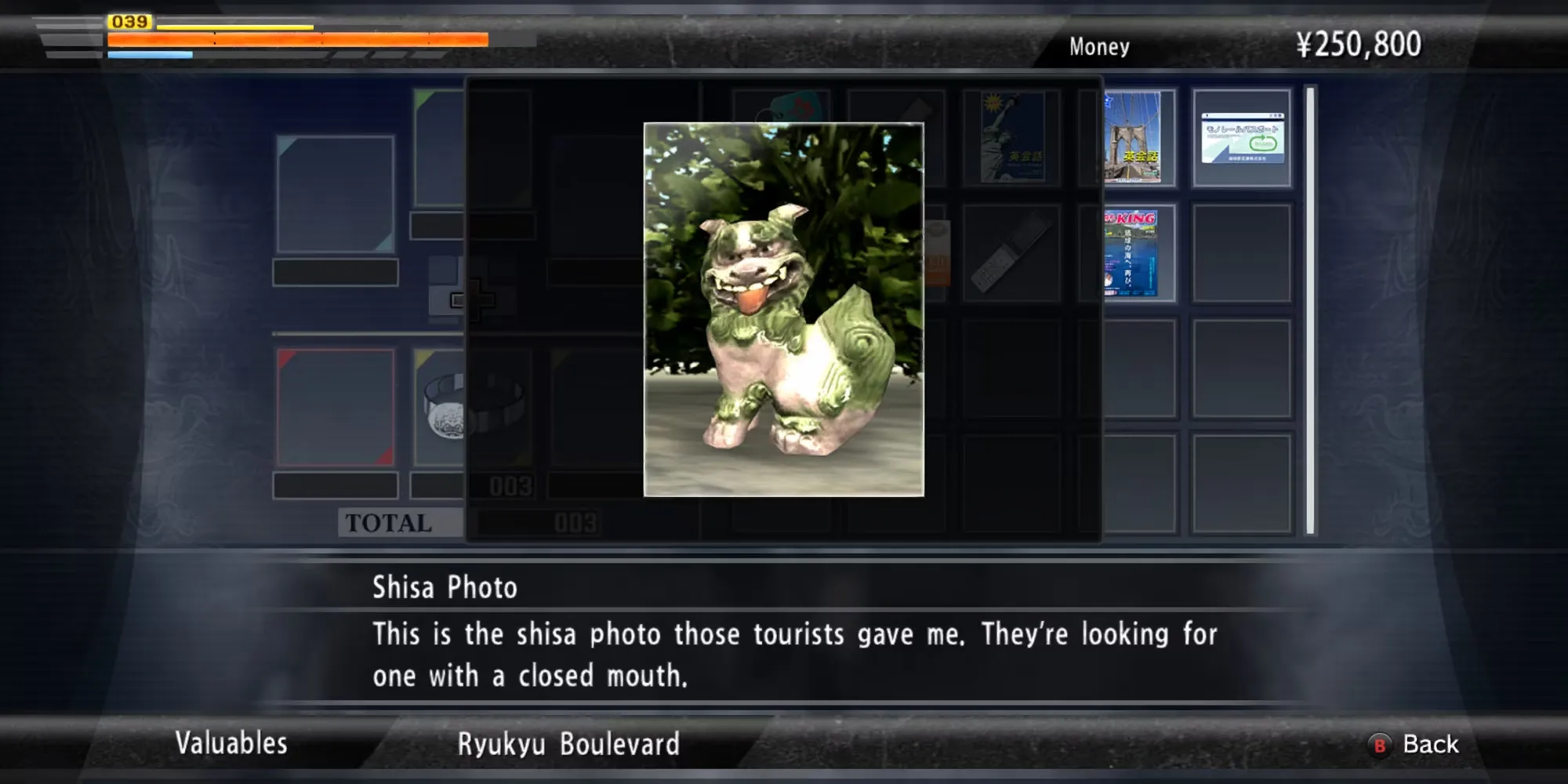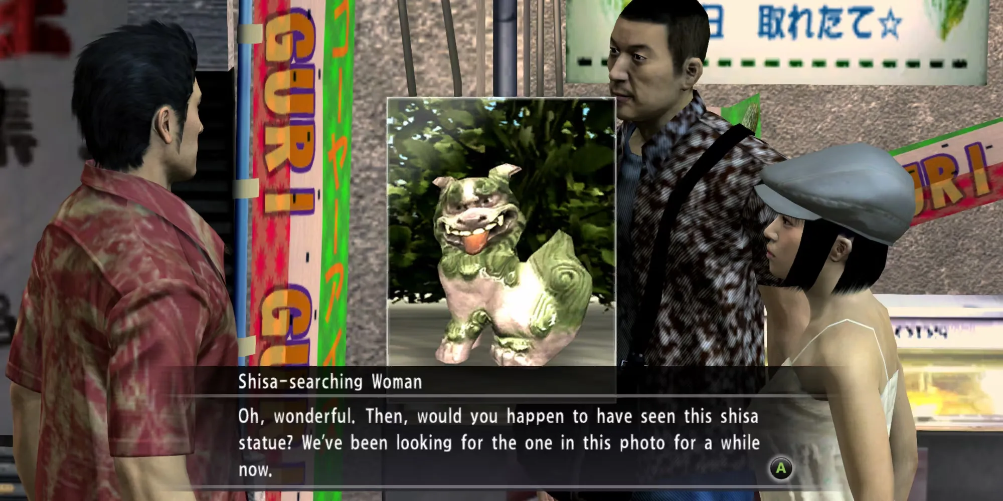 Статуя Шисы, которую ищет пара, на самом деле находится в северной части центра Рюкю. Отправляйтесь на северную улицу Хацумачи, расположенную над клубом-кабаре Flawless и точкой сохранения. Идите по пустой улице на восток, пока Кирю не заметит статую на земле.