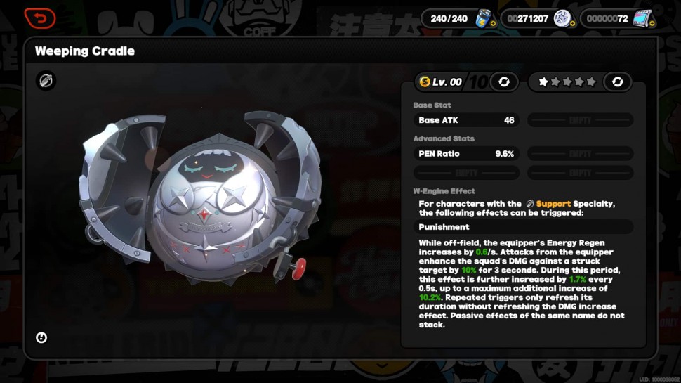 Поскольку Николь использует свои умения, чтобы собрать врагов в одном месте, чтобы ее друзья могли начать комбо с вомбо, "Плачущая колыбель" отлично подойдет, так как это W-способность S-уровня, которая увеличивает урон всего отряда по цели на 10 %.