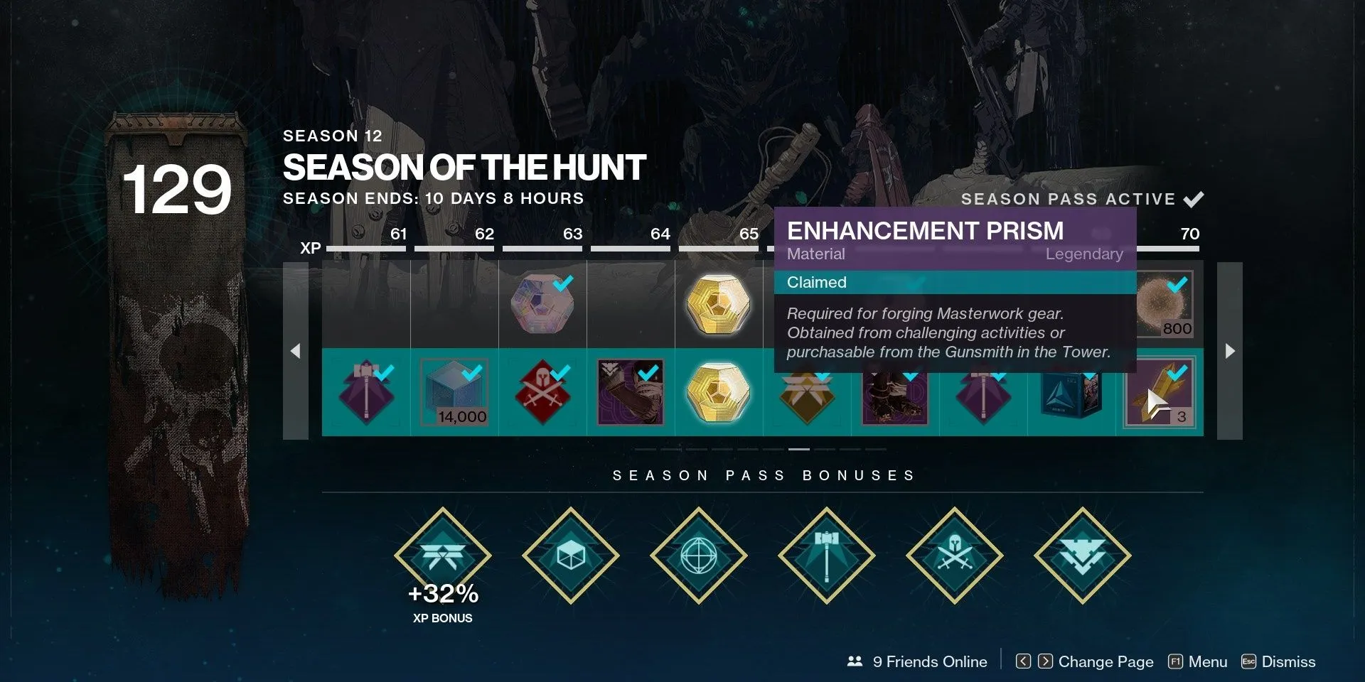 Достижение определенных рангов Infamy и Valor откроет награды в Drifter и Shaxx соответственно. Для любой лестничной системы достижение ранга 13 даст две улучшающие призмы. Если вы сбросите свою доблесть в сезоне, достижение ранга 16 в любой системе даст дополнительные две улучшающие призмы, что даст вам четыре улучшающих призмы в общей сложности за сброс.
