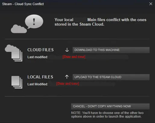 Если у вас появится это сообщение об ошибке, обязательно проверьте, хранятся ли ваши последние сохраненные данные в "Локальных файлах" или в "Облачных файлах", посмотрев на сегмент "Последнее изменение" под каждым из них. В зависимости от того, какая из них имеет последнюю дату и время, в идеале должно быть ваше последнее сохранение – нажмите на приглашение рядом с ним.