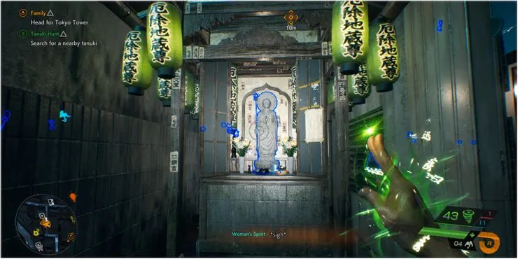 Спектральное зрение показывает каждый объект, врага и духа рядом с Акито. это невероятно мощная способность, которая делает многие охоты на падальщиков намного, намного проще. Статуи Дзидзо, естественно, появляются в спектральном зрении, но могут быть немного неудобными для обнаружения. К счастью, статуи Дзидзо также имеют четкий звуковой сигнал, когда ваше спектральное зрение показывает его, поэтому вы всегда будете знать, когда находитесь в нужном месте.
