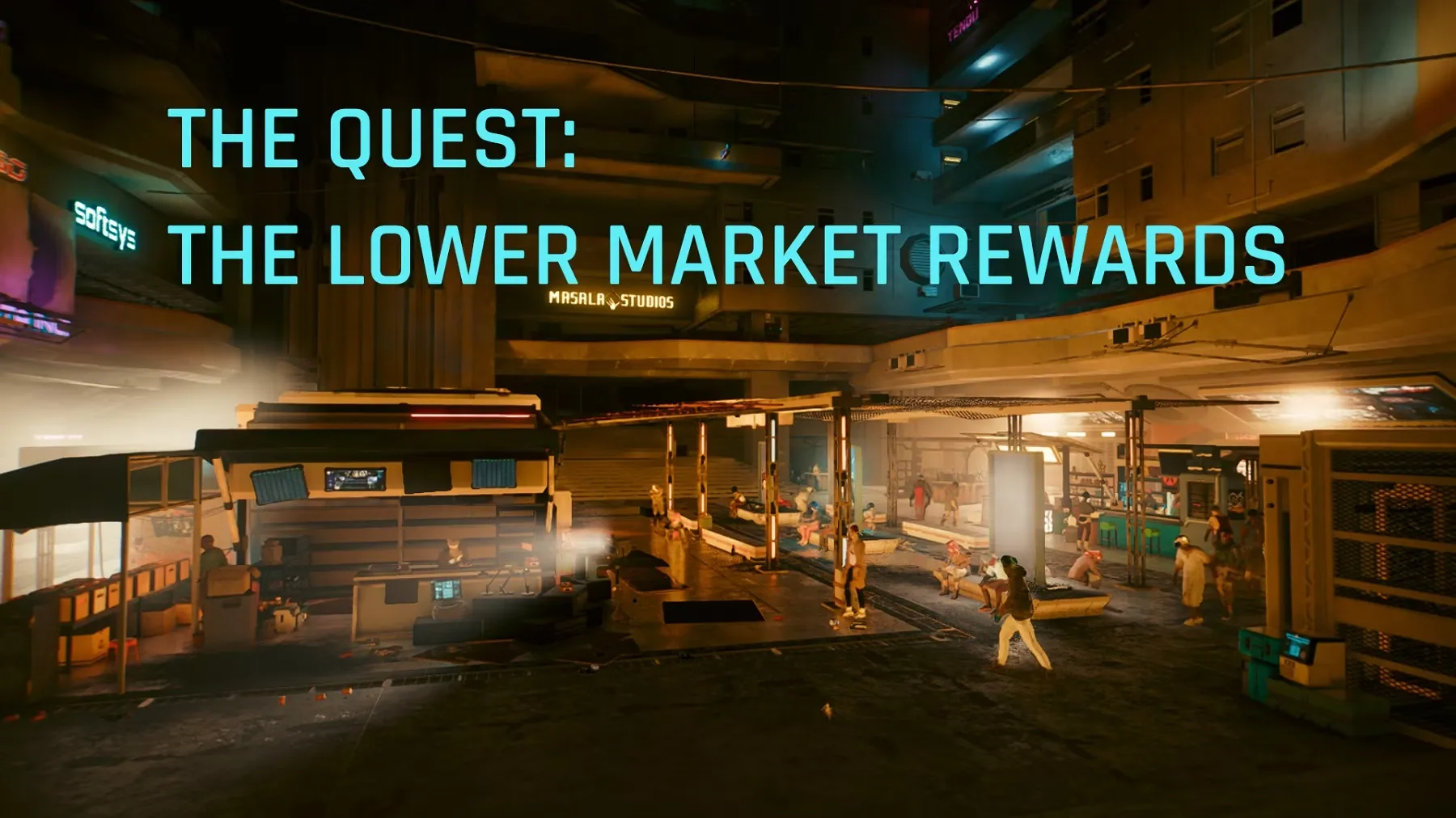 Изображение из мода Cyberpunk 2077, показывающее ранее недоступную область на Нижнем рынке.