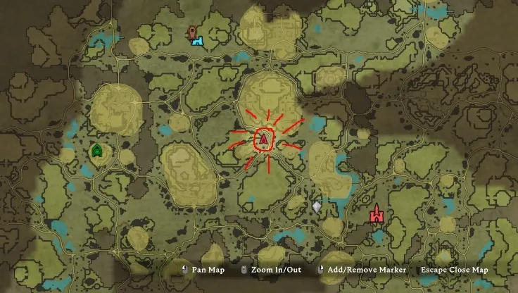 Альфа-волка можно найти рядом с лагерем разбойников в лесу Фарбейн, как показано на изображении ниже. Альфа-волк обитает в волчьем логове, и если вы увидите кучу обычных волков, значит, вы, скорее всего, на правильном пути. Я нашел Альфа-волка в отмеченном ниже месте, но есть еще два логова, в которых вы можете его найти. Все они находятся неподалеку друг от друга, поэтому просто придите в указанную ниже область леса Фарбейн и следуйте за красным индикатором слежения.