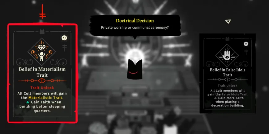 Те, кто отправится на второй уровень владений дерева доктрины, также найдут черту под названием "Вера в ложных идолов". Разблокировав эту черту, вы получите хороший прирост к количеству Веры, генерируемой при размещении украшений, что дает игрокам фантастический способ укрепления Веры в кратчайшие сроки.