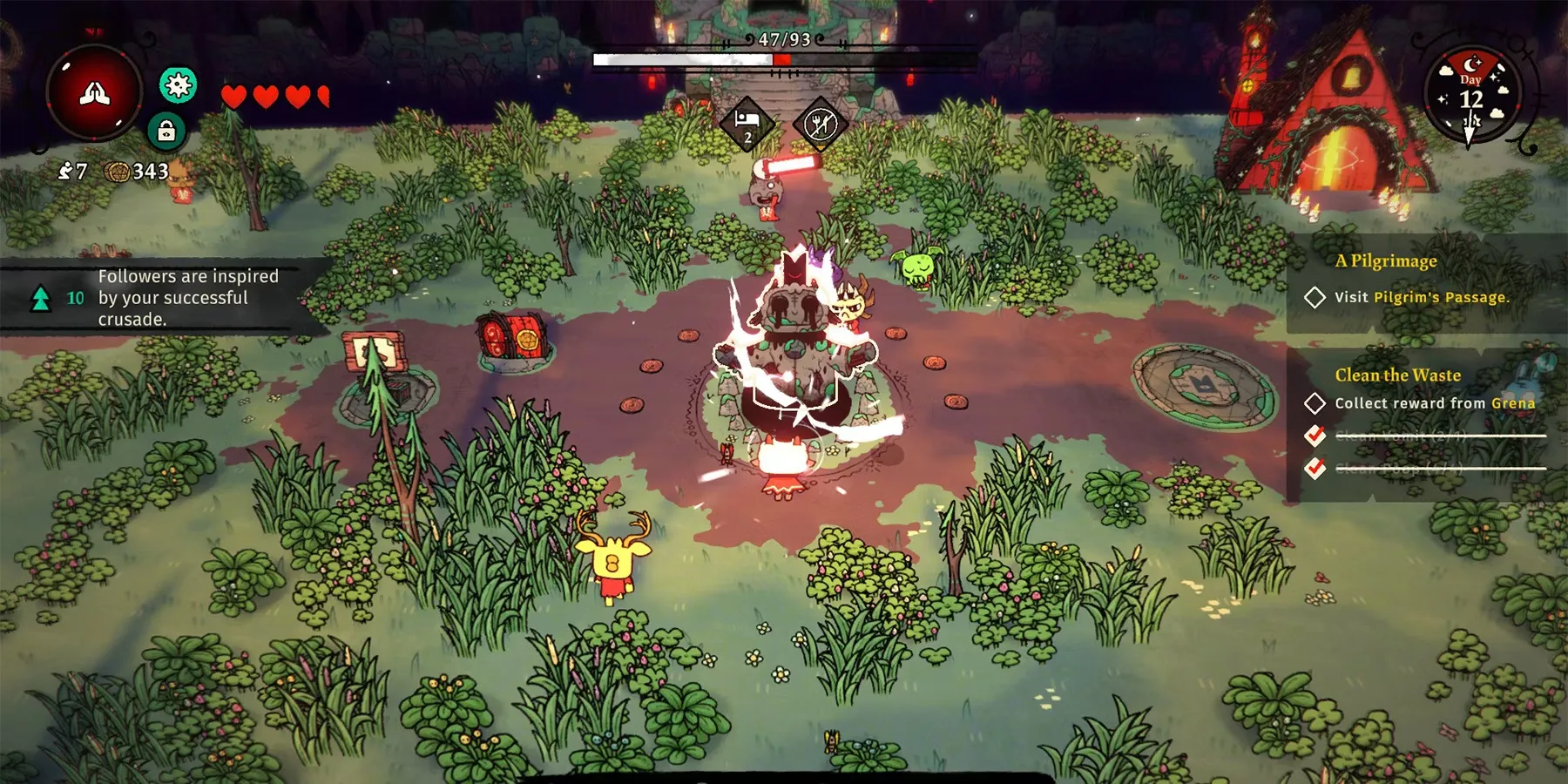 Cult of the Lamb - это обманчиво простая ролевая игра. В первые моменты игры игроки сразу же попадают в боевые секции, и им может показаться, что они играют в любое другое процедурно генерируемое приключение с ползанием по подземельям. Однако все изменится, как только игроки успешно пройдут боевое обучение и попадут на свой собственный небольшой участок земли. Здесь игроки знакомятся с удивительно глубокой механикой управления городом в Cult of the Lamb.