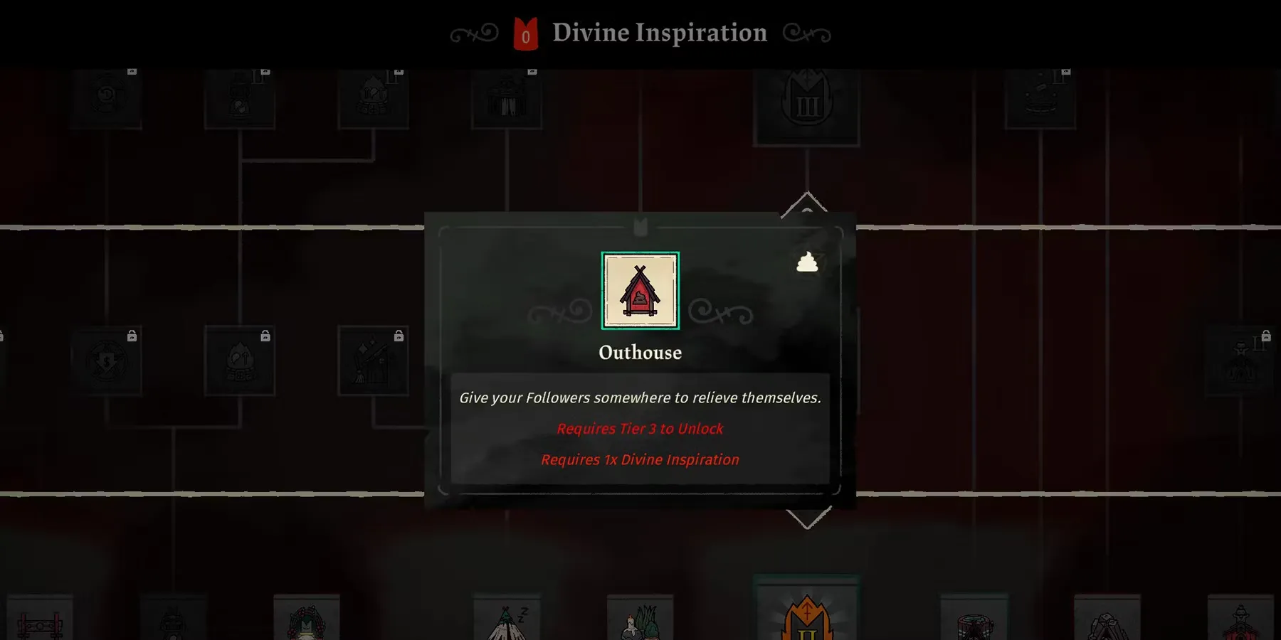 Навоз не только некрасивый, но и может вызвать у культистов болезнь, если оставить его на участке. К счастью, есть здание, которое поможет справиться с антисанитарными условиями. После получения Уровня III игроки смогут построить пристройку, в которой культисты смогут оставлять свои отходы, сохраняя окружающую территорию чистой.