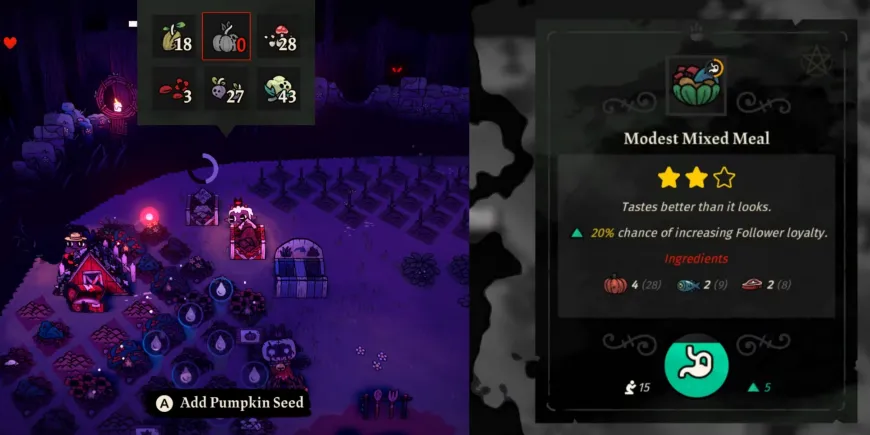 Каждой изолированной общине единомышленников нужен сельскохозяйственный участок, и Cult of the Lamb - не исключение из правил. Скромный маленький фермерский участок - одно из самых первых сооружений, которое Ягненок сможет построить в штаб-квартире, и он бесполезен без семян для посадки.