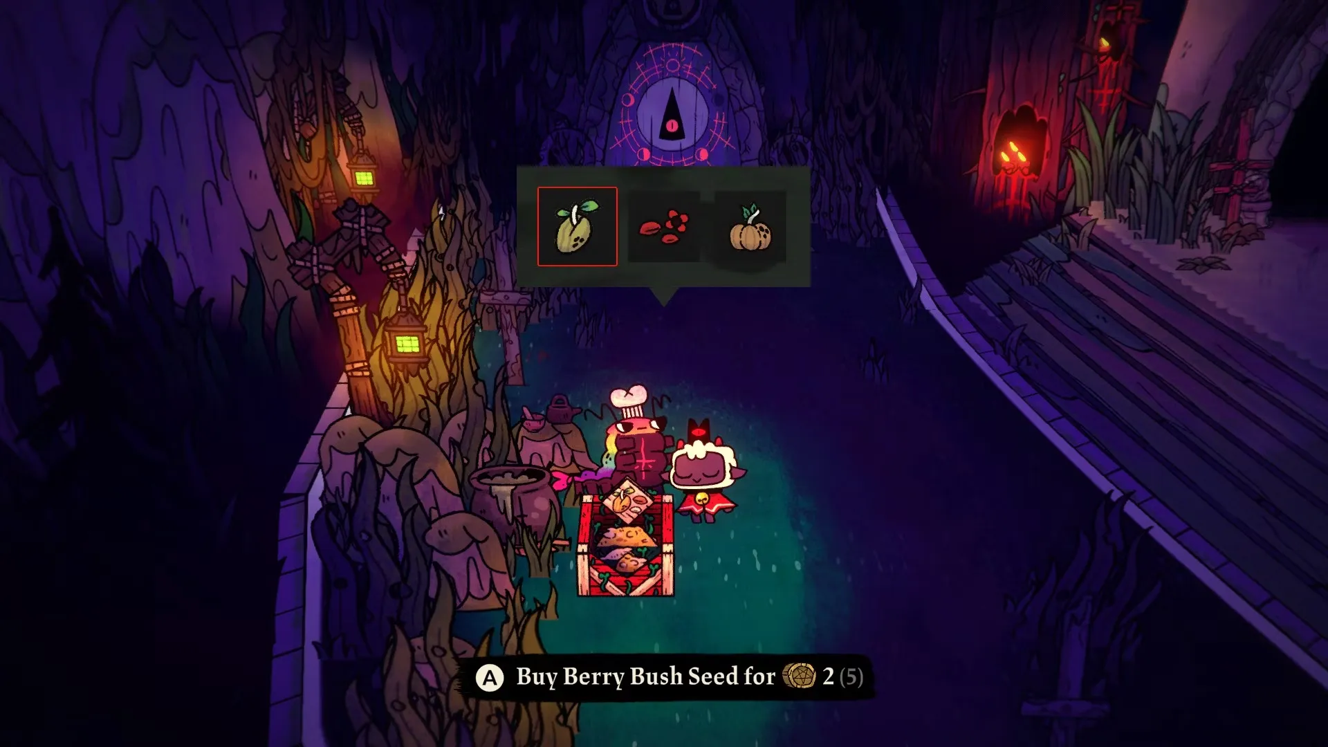 - Торговцы. В Cult Of The Lamb есть несколько торговцев, и у некоторых из них можно купить семена. Один торговец, продающий только семена и овощи, находится у ворот в Анкордип.