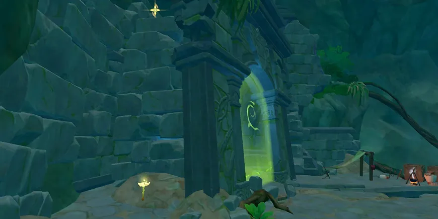 Как и некоторые другие скрытые путевые точки, Фрагмент домена "Мечты детства" в Genshin Impact также находится под землей. Чтобы разблокировать этот Домен, игроки должны сначала осушить воду вокруг руин Поля Виссудха. Это также откроет доступ к подводной точке телепортации, так что это как бы бьет двух зайцев одним выстрелом.
