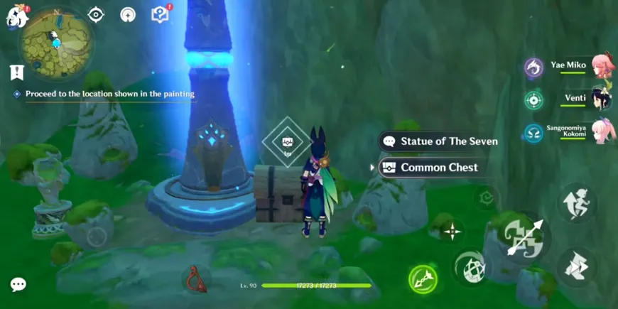 Чтобы перейти к месту, изображенному на картине в Genshin Impact, игрокам необходимо использовать кнопку Копать в правильном месте. Для этого телепортируйтесь к Статуе Семи в Ванаране. Прямо рядом со статуей появится команда Копать, указывающая на то, что сокровища находятся там.