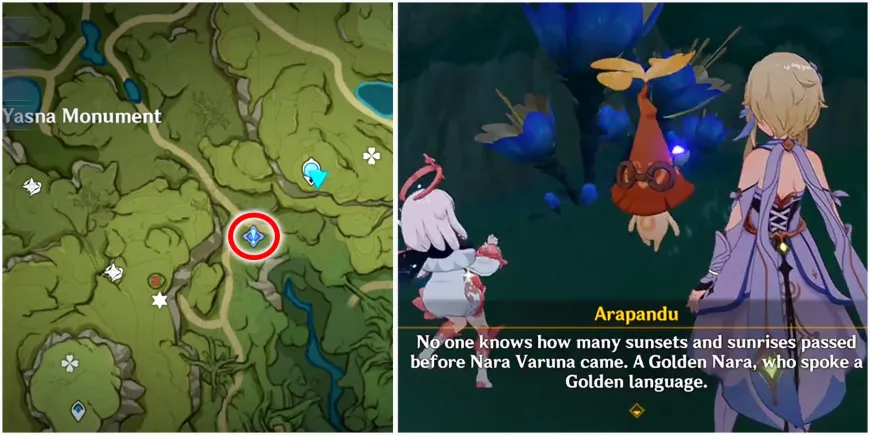 Чтобы начать квестовую линию Varuna Gatha в Genshin Impact, игроки должны найти Аранару в лесу Апам. Отправляйтесь в отмеченное на карте место, чтобы начать квест Varuna Gatha.