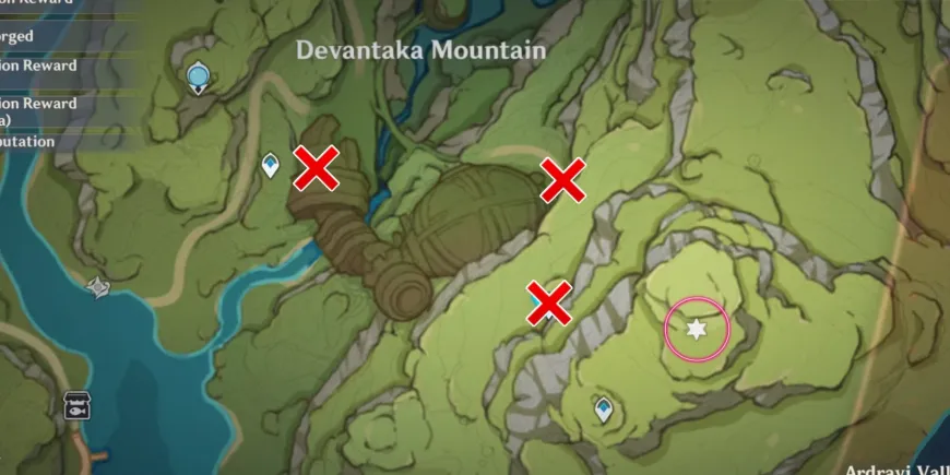 В общей сложности 11 мест расположения печатей каменных столбов находятся на поверхности земли, а остальные пять - в пещерах. Две подземные печати Каменного столба к северу от Пардис Дхьяи находятся в пещере, где игроки получат квест "Легенды каменного замка" в Genshin Impact. Остальные три доступны из этих мест: