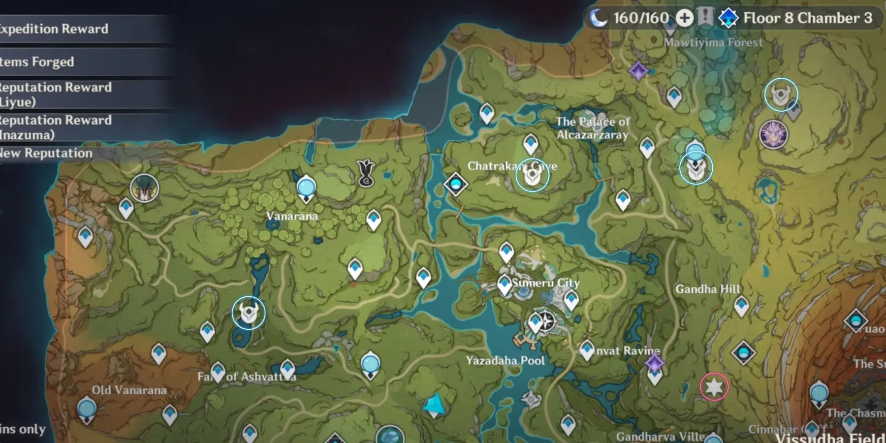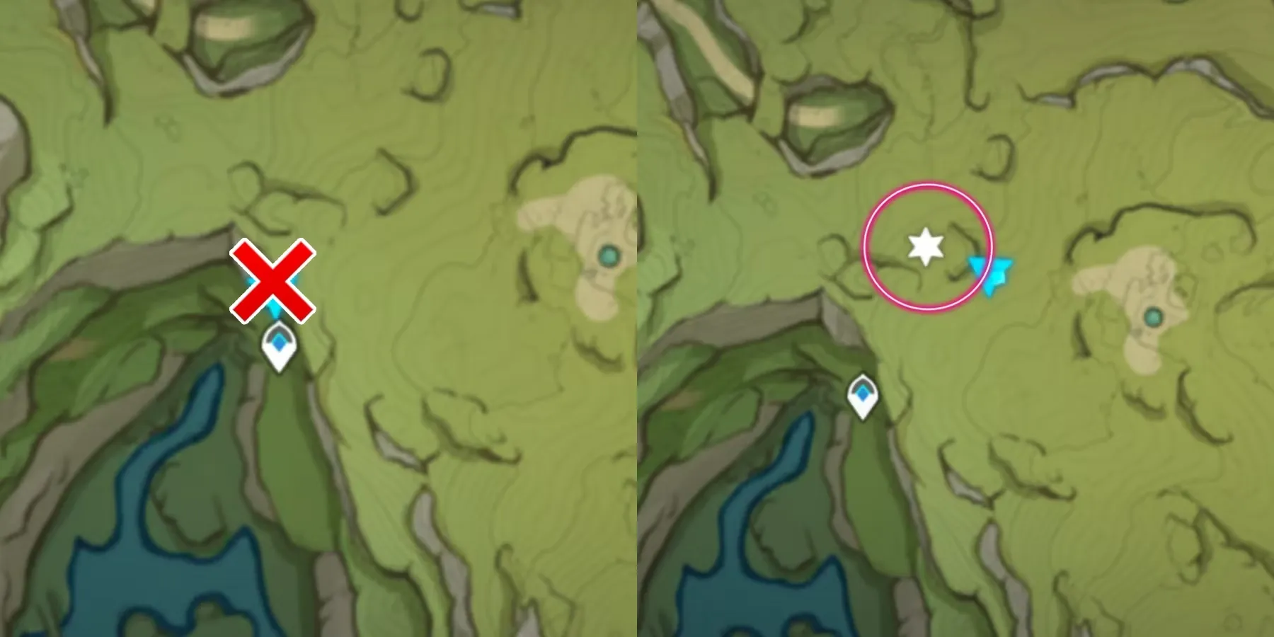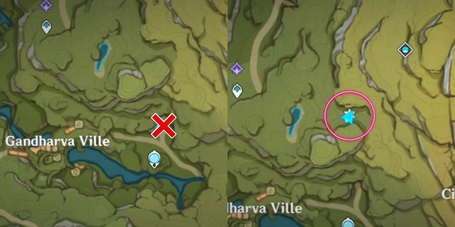 В Сумеру в общей сложности 16 мест, где находится печать каменного столба. Те, что отмечены маской Хилихурла (синим кругом), находятся на земле, а те, что отмечены звездой (розовым кругом), - под землей.